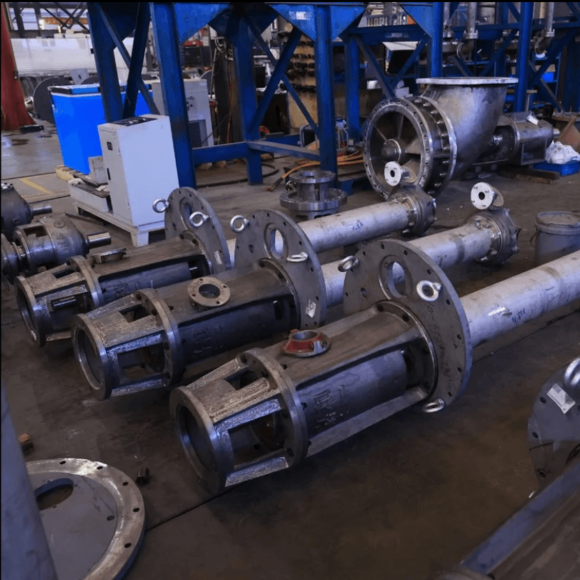 This series achieves a maximum submerged depth of 3.6 meters. It employs a dual-support structure: above the liquid level, two rows of angular contact ball bearings bear axial loads; below the liquid level, one or two pairs of sliding bearings (i.e., shaft sleeves and bushings) bear radial loads. The flow-through components are crafted from high-quality JSB alloy material, resistant to high-temperature sulfuric acid corrosion, ensuring long service life.